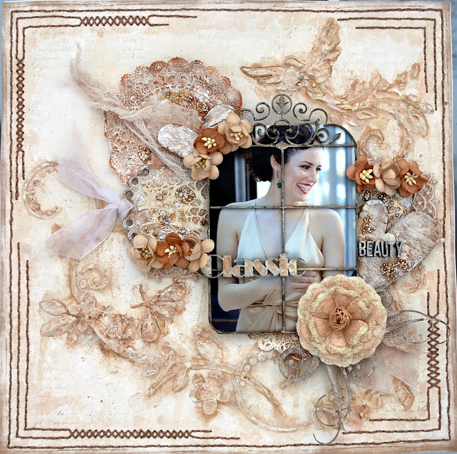 ReplyDeleteYou have totally rocked the beige with this layout! Love the way you displayed your picture, just stunning.
